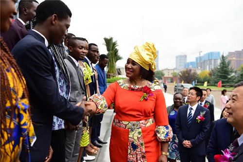 11月12日上午,2018级刚果(布)留学生开学典礼在广厦学院文体中心报告厅隆重举行。刚果(布)林业部部长罗莎莉•马东多(Rosalie Matondo)亲切接见了其本国21名学生,并与其合影留念。