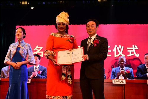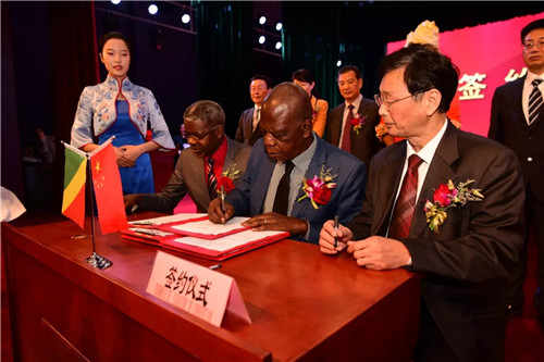 会上,广厦学院院长沈兵虎为罗莎莉•马东多部长颁发了名誉教授聘书,并代表学院和刚果(布)林业部签署了长期合作协议。刚果(布)共和国林业部部长罗莎莉•马东多、东阳市副市长蒋震雷先生为“浙江广厦建设职业技术学院刚果(布)研究所”揭牌。签约仪式之后,双方对进行深入合作广泛交换了意见,共同助力推进职业教育发展。
