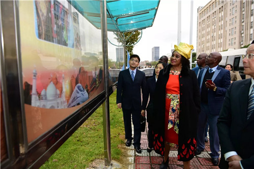 典礼结束后,学院领导陪同刚果(布)林业部长参观了留学生活动中心、留学生寝室、木雕实训室等,优美雅致的校园环境让罗莎莉•马东多部长赞叹不已,她表示,留学生在这样的环境里学习美好的木雕技艺,是一件十分美好的事。