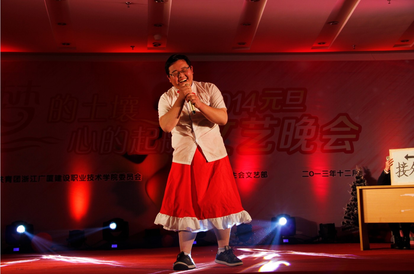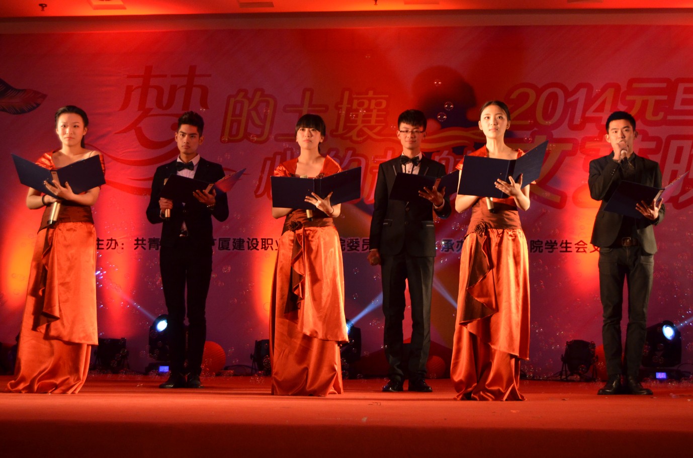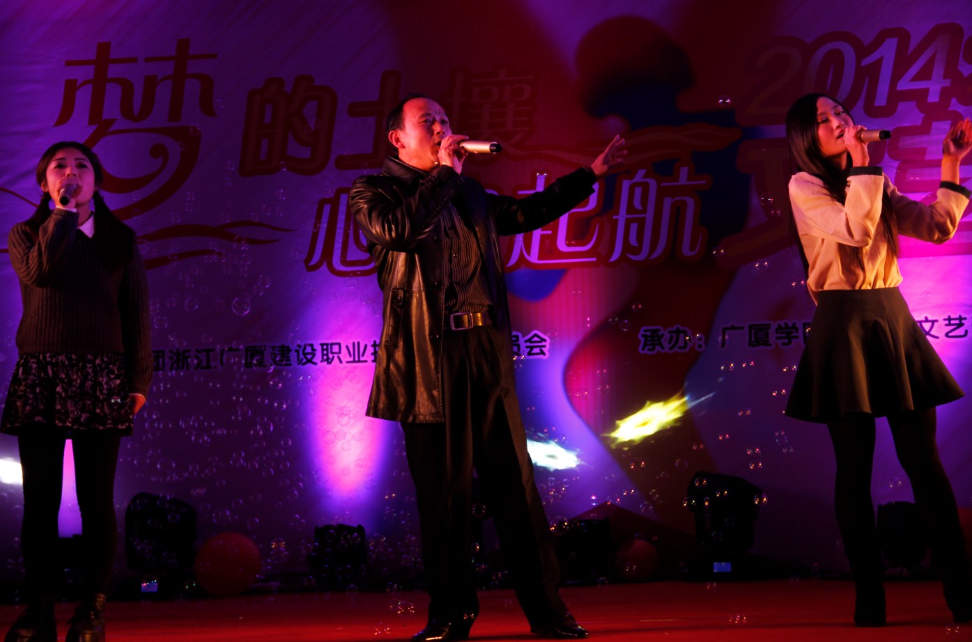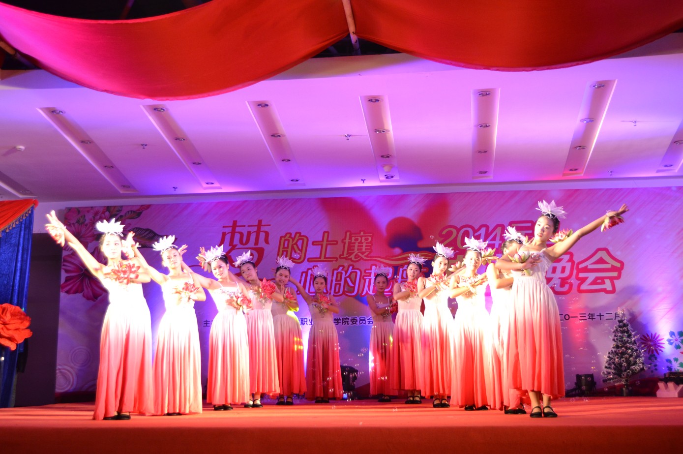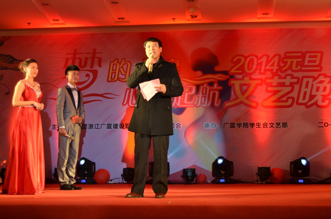 12月25日晚,我院处处洋溢着喜庆的气氛,沉浸在欢乐的海洋,综合楼八楼流光溢彩,热闹非凡,“梦的土壤•心的起航”广厦学院2014年元旦文艺晚会正在此隆重举行。学院党委常务副书记、院长许华春,学院副院长贾恭惠,学院党委副书记,院长助理徐小宁,学院院长助理周俊辉出席晚会。