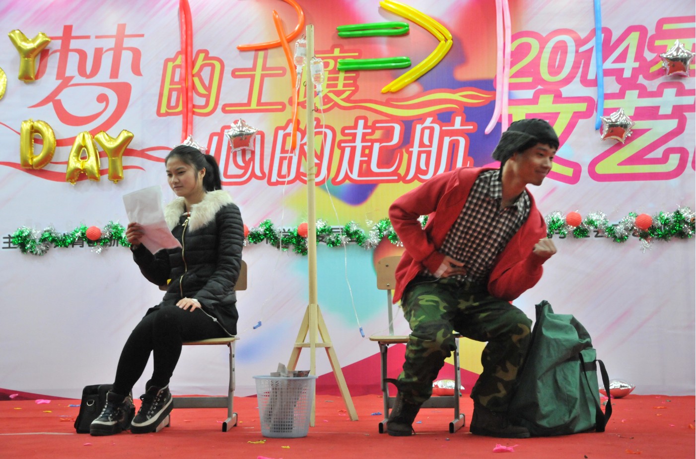 新闻社和文学社联手演绎的小品《当罗密欧遇上祝英台》,赢得现场观众的阵阵欢笑。
