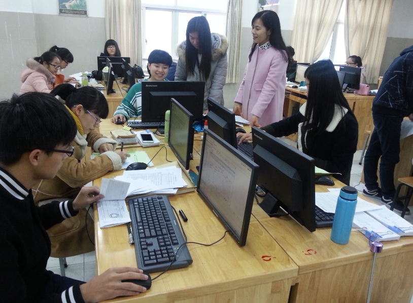东阳圣华税务师事务所注册税务师金冬霞,现场为学生们指导建筑企业国税和地税的申报流程,为内容丰富的分层实训锦上添花!