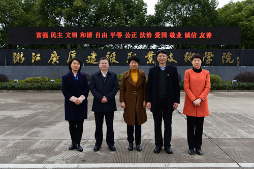 1月22日下午,金华市副市长陶叶萍、副秘书长金艳、办公室处长陈向阳一行来院调研指导工作。东阳市政府副市长蒋令树、陈巧锦、学院党委书记徐征宇陪同调研。