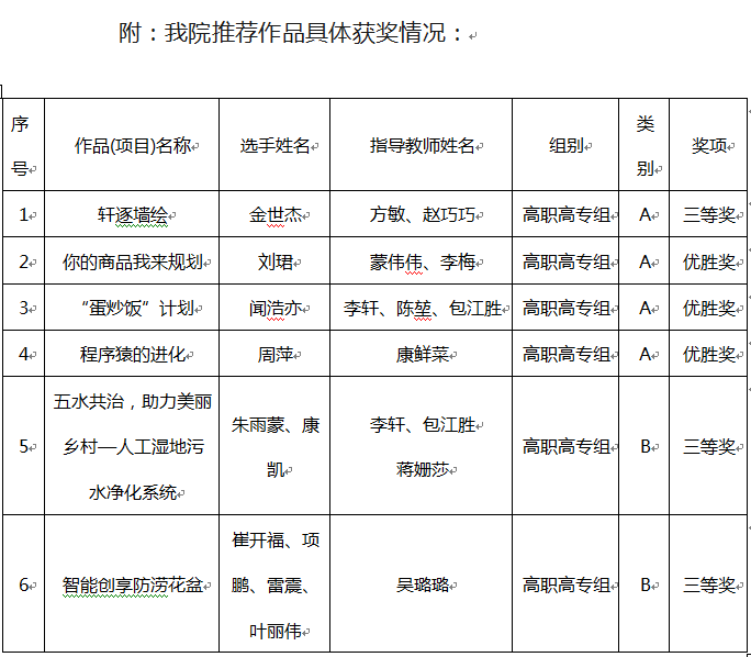 我院学子在第十届浙江省大学生职业生涯规划与创业大赛中喜获佳绩 来源:招就处 作者: 发布时间:2018-10-10 浏览次数: 次 【字体:小 大】 近日,由浙江省大学生创新创业大赛组委会主办的第十届浙江省大学生职业生涯规划与创业大赛复赛结果揭晓,我院推荐的6个作品分获高职高专组A类(职业规划类)三等奖1个,优胜奖3个;B类(创新创意类)三等奖2个。 本次比赛分各高校选拔赛、浙江省复赛和决赛三个阶段。学院领导高度重视,要求职能部门、各分院认真策划,层层发动,以点带面,切实提高我院参赛作品质量,提升大学生职业生涯规划能力水平。 【打印正文】 相关信息