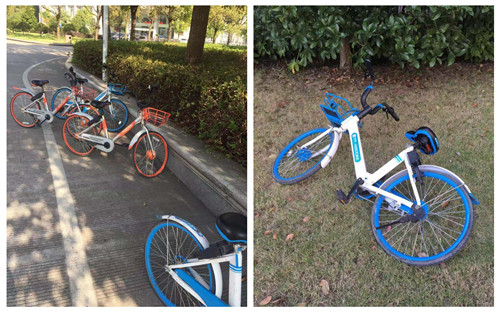 三、自行车(共享单车):不骑车带人,不做危险骑乘动作(双手离开车把骑行、坐自行车篮乘坐、站立在后轮车轴上乘坐等)。不乱停乱放,不将共享单车随意丢弃在绿化带、运动场上,请在非机动车停车位有序停放。