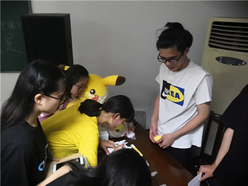 19点,读书节书友会正式开始。活动主要由识字、分享介绍书籍、交换书籍三部分组成。去年年末的一首《生僻字》火遍大街小巷,活动以生僻字做铺垫,开始了识字游戏。大家积极参加,现场十分热闹,题目十分有趣,同学们争先恐后的进行作答。几轮题目下来,现场同学直呼:“中华的文字真是变化莫测呢”!