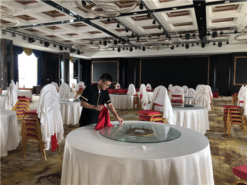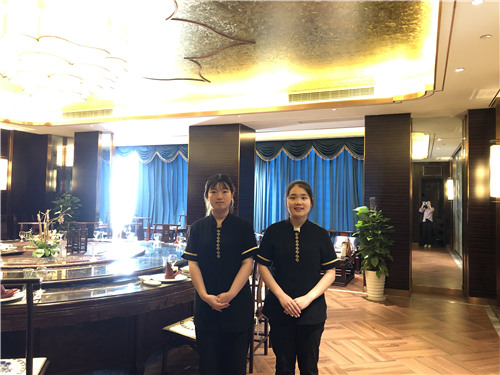 酒店按正规的实习生要求对同学们进行了系统的岗前培训。同学们和酒店正式员工一样,身穿酒店统一发放的工作服,在各自的岗位上进行对客服务。餐饮部是酒店各部门中最为忙碌和辛苦的部门,酒店宴会厅半个月里承接了大大小小十几场宴会,同学们在每场宴会中在各自的服务岗位上大显身手,他们周到细致的服务,赢得了酒店方和参会人员的高度赞赏。VIP包厢服务的要求很高,同学们除了要完成中餐厅服务之外,还需要为客人提供具有个性化的服务,并满足客人提出的合理要求,同时处理好包厢内的突发事件。