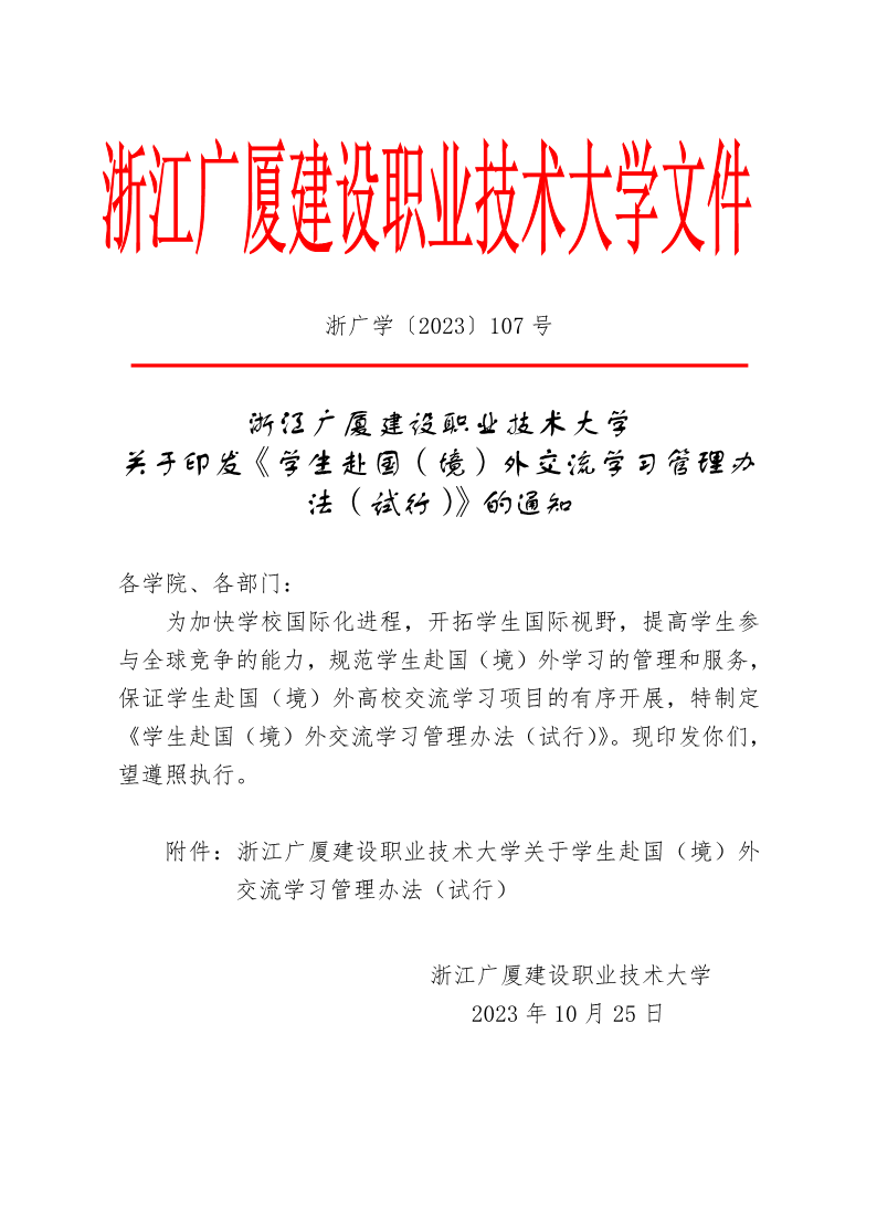 浙江广厦建设职业技术大学关于学生赴国(境)外交流学习管理办法(试行)