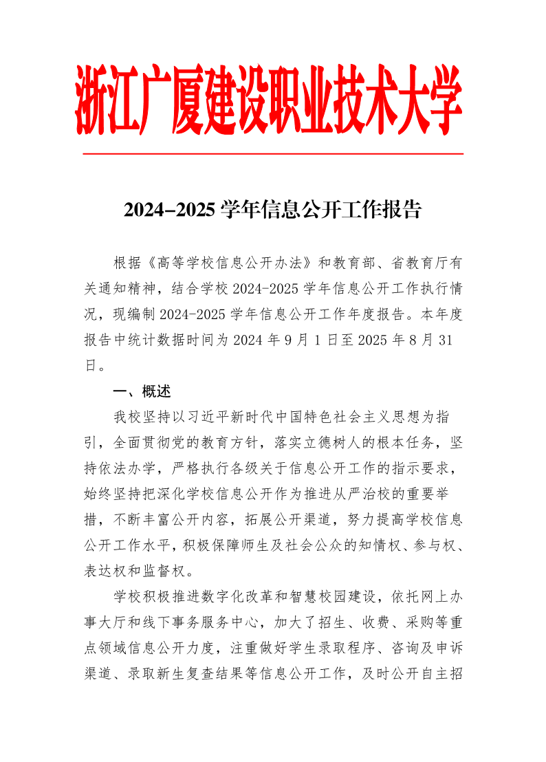 浙江广厦建设职业技术大学2024-2025学年信息公开年度报告