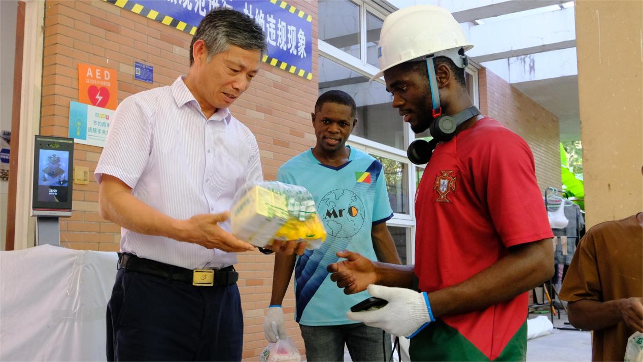 卜月华一行先后来到国际交流中心建设工地、学生公寓1-5号楼、11-15号楼维修改造施工现场,查看工程进度及暑期后勤服务保障情况,并为一线员工送上藿香正气水、毛巾、硫磺皂等防暑降温物资,带去学校的关心问候。
